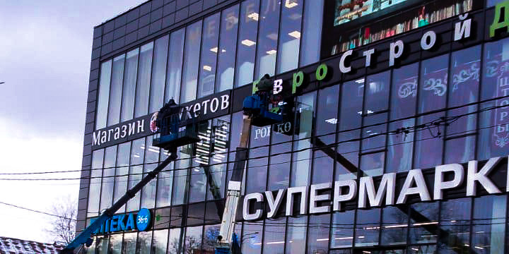 Они могут возникнуть в результате падения вывески, действий вандалов, повреждений, вызванных атмосферными явлениями (сильный ветер, град, обрушение сосулек), птицами или твердыми посторонними предметами. В случае с лайтбоксами ремонт вывески будет заключаться в замене короба, лицевой панели, профиля или боковых плоскостей. Если это объемная световая конструкция, может потребоваться демонтаж и обновление одной или нескольких букв.